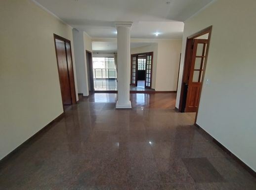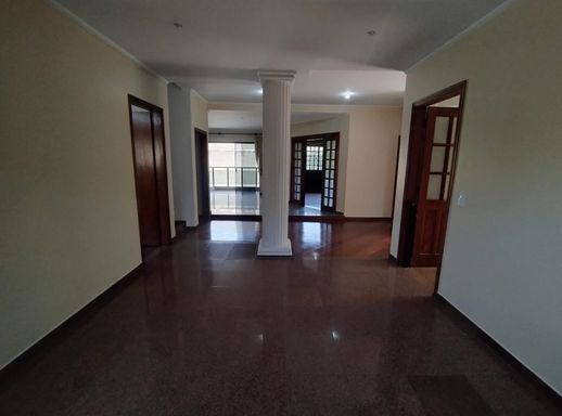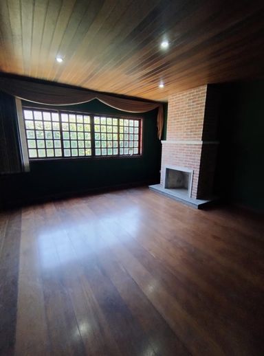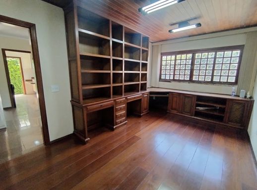 Sala de estar com sacada, sala de jantar, sala de lareira e escritório;