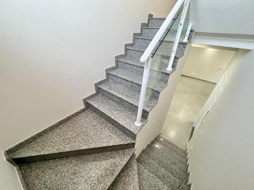 Todas as janelas são providas de persianas integradas elétricas sendo que as esquadrias dos dormitórios são comandadas por controle remoto e as da sala, cozinha e fachada/escada, além de serem persianas integradas elétricas também são comandadas por sistema de comando de voz Alexia.